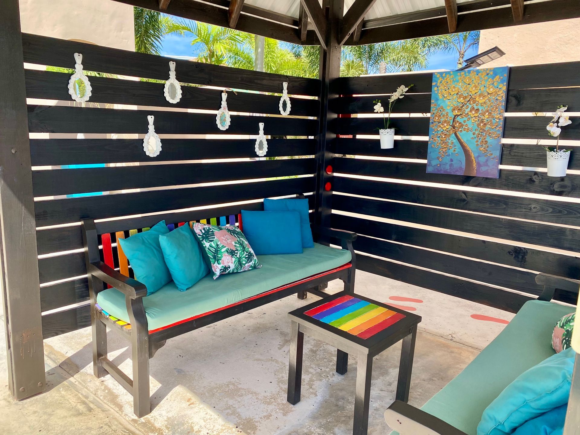 Het huis heeft een bijzondere charme. De binnenplaats is aangekleed met originele Amalia-beelden en kleurrijke muurschilderingen die de sfeer van Curaçao op authentieke wijze weerspiegelen.